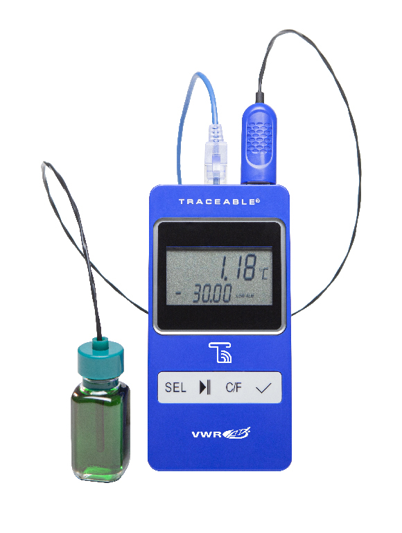 Once setup is complete, you can securely monitor parameters 24/7, control your alarms remotely, view your data logging history, run reports in real-time, and give access to other team members. Stay connected with your lab via smartphone, tablet, or computer, with no local software required to use the cloud-based interface. Get the TraceableLIVE app to view mobile push notifications, emails, or texts for out-of-range conditions or connectivity interruptions. The large tri-line LCD display shows current and Min/Max readings. The thermometer features audible and visual alarms that help those present in the lab identify any out-of-range conditions. A low-cost subscription is required for TraceableLIVE use.