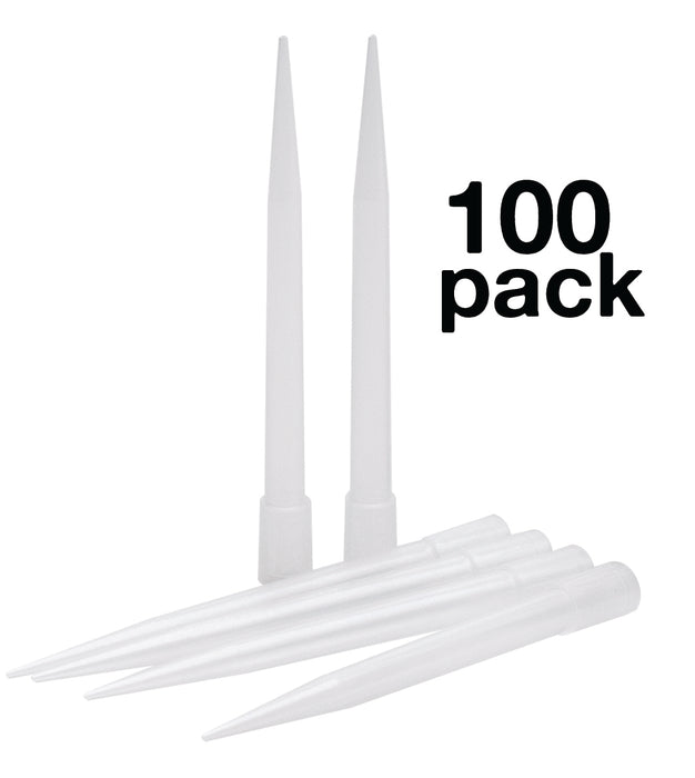 Pack of 100 non-sterile, autoclavable micropipette tips. Free of lubricants, dyes and heavy metals. 5,000µl capacity. Each micropipette tip measures 5.9" long