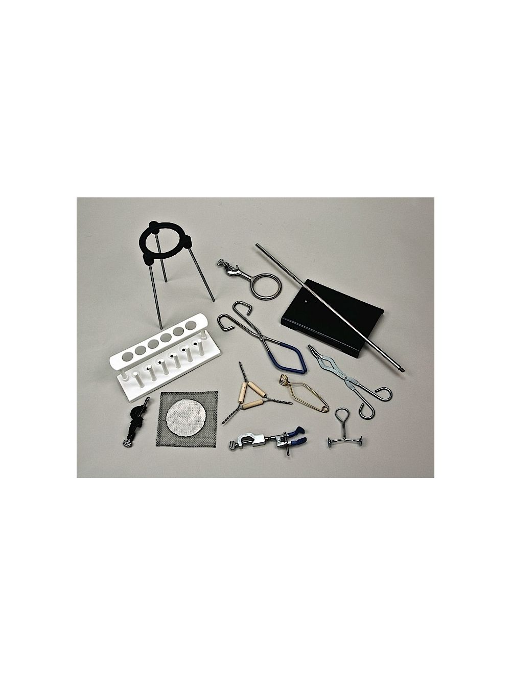 This starter kit provides an assortment of commonly used hardware in general chemistry laboratories, including the following:
