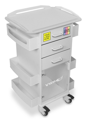 Here is the corrected text: **Product Description** Our flexible storage carts are designed to provide additional storage and work space in labs, clinics, hospitals, and other locations. With five different sizes and multiple color options, you can choose the perfect cart for your needs. Each cart features: * Locking hinged door * Bulk storage area with door * One key that locks drawers and bulk storage * Full-extension drawers with handle * Polyethylene construction that resists chemicals Our carts come with four 3" industrial casters, two of which lock. The top-side shelves include a built-in dispenser for Kimwipes and gloves. Shelves can be easily removed and reinserted as needed. **Ordering Information** When ordering, please specify the following: * Number of full-extension drawers (1, 2, 3, or 4) * Large bulk storage area * Number of side shelves (4 or 6) * Built-in dispensers for gloves and wipes Our carts are backed by a total-replacement lifetime manufacturer's guarantee. A rail top for security is optional. For custom printed carts, please submit the Pantone color or vector of logo/image, including the location of the logo/image. **Available Colors** * White * Global blue * Bahamas sea teal * Silver metallic