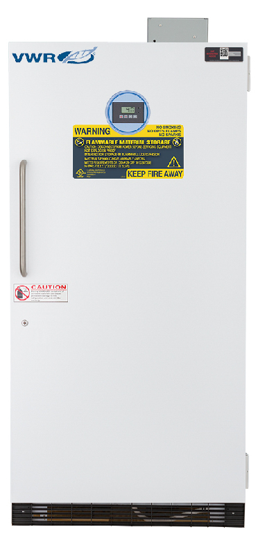 These VWR® laboratory freezers are designed for the safe storage of flammable substances., These flammable storage freezers are designed to store and protect volatile substances in laboratory settings. These freezers meet the requirements of NFPA 45 and NFPA 30 for cold storage of flammable and combustible materials in unclassified laboratory locations. They utilize non-sparking and/or ATEX rated components to ensure an intrinsically safe interior for flammable materials in sealed containers., 04_BodyText: The Plus line includes premium additions such as extensive alarm systems and digital touch pad displays., 05_BodyText: Material: White powder coat, 02_BulletPoint: Microprocessor temperature controller | Digital temperature display and alarm module | Audible, visual, senor error, and power failure alarms | Alarm validation and alarm mute with ring back | Keyed door lock, 08_Certifications: Units meet the requirements of NFPA 45 and NFPA 30 for cold storage of flammable and combustible materials in unclassified laboratory locations. UL/C-UL listed., 10_Ordering: Units come with a two year parts and labor warranty., Final SAP Desc Link: 6060478, SAP Description Status: Ready, Temperature range: ‒15...‒25 °C, These VWR® laboratory freezers are designed for the safe storage of flammable substances., These flammable storage freezers are designed to store and protect volatile substances in laboratory settings. These freezers meet the requirements of NFPA 45 and NFPA 30 for cold storage of flammable and combustible materials in unclassified laboratory locations. They utilize non-sparking and/or ATEX rated components to ensure an intrinsically safe interior for flammable materials in sealed containers., 04_BodyText: The Plus line includes premium additions such as extensive alarm systems and digital touch pad displays., 05_BodyText: Material: White powder coat, 02_BulletPoint: Microprocessor temperature controller | Digital temperature display and alarm module | Audible, visual, senor error, and power failure alarms | Alarm validation and alarm mute with ring back | Keyed door lock, 08_Certifications: Units meet the requirements of NFPA 45 and NFPA 30 for cold storage of flammable and combustible materials in unclassified laboratory locations. UL/C-UL listed., 10_Ordering: Units come with a two year parts and labor warranty., Capacity: 850 L (30 cu.ft.), Plus series laboratory freezer upright flammable storage, 30 CF, Cat. No.: 76580-134, Electrical: 115 V, 60 Hz, 6 A, ⅓ HP, Defrost: Manual, Door Type: 1 solid door, right hinged, Shelves/drawers: 4 fixed shelves, Weight: 187 kg (413 lbs.), Exterior W×D×H: 908×889×1949 mm (35¾×35×76¾"), Interior W×D×H: 813×572×1651 mm (32×22½×65"), Cat. No.: 76580-134, Final SAP Desc Link: 6060478, SAP Description Status: Ready