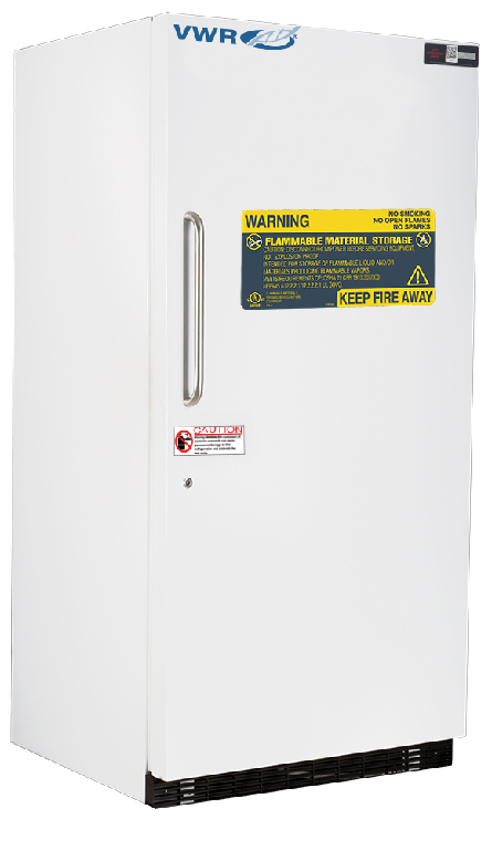 Temperature range: ‒15...‒25 °C, These VWR® laboratory freezers are designed for the safe storage of flammable substances., These flammable storage freezers are designed to store and protect volatile substances in laboratory settings. These freezers meet the requirements of NFPA 45 and NFPA 30 for cold storage of flammable and combustible materials in unclassified laboratory locations. They utilize non-sparking and/or ATEX rated components to ensure an intrinsically safe interior for flammable materials in sealed containers., 04_BodyText: The standard line provides multi-functional features in a cost-effective design., 05_BodyText: Material: White powder coat, 02_BulletPoint: Mechanical thermostat | Keyed door lock | High density foam insulation, 08_Certifications: Units meet the requirements of NFPA 45 and NFPA 30 for cold storage of flammable and combustible materials in unclassified laboratory locations. UL/C-UL listed., 10_Ordering: Units come with a two year parts and labor warranty., Capacity: 850 L (30 cu.ft.), Standard series laboratory freezer upright flammable storage, 30 CF, Cat. No.: 76580-138, Electrical: 115 V, 60 Hz, 6 A, ⅓ HP, Defrost: Manual, Door Type: 1 solid door, right hinged, Shelves/drawers: 4 fixed shelves, Weight: 171 kg (378 lbs.), Exterior W×D×H: 908×902×1842 mm (35¾×35½×72½"), Interior W×D×H: 813×572×1651 mm (32×22½×65"), Cat. No.: 76580-138, Final SAP Desc Link: 6060478, SAP Description Status: Ready, These VWR® laboratory freezers are designed for the safe storage of flammable substances., These flammable storage freezers are designed to store and protect volatile substances in laboratory settings. These freezers meet the requirements of NFPA 45 and NFPA 30 for cold storage of flammable and combustible materials in unclassified laboratory locations. They utilize non-sparking and/or ATEX rated components to ensure an intrinsically safe interior for flammable materials in sealed containers., 04_BodyText: The standard line provides multi-functional features in a cost-effective design., 05_BodyText: Material: White powder coat, 02_BulletPoint: Mechanical thermostat | Keyed door lock | High density foam insulation, 08_Certifications: Units meet the requirements of NFPA 45 and NFPA 30 for cold storage of flammable and combustible materials in unclassified laboratory locations. UL/C-UL listed., 10_Ordering: Units come with a two year parts and labor warranty., Final SAP Desc Link: 6060478, SAP Description Status: Ready