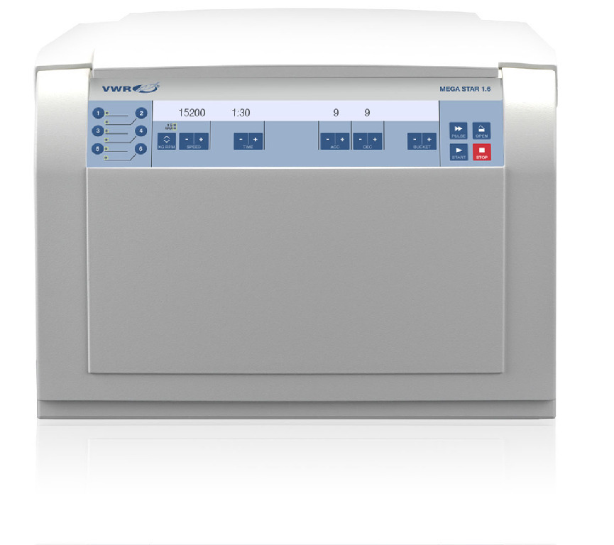 Temperature range: —, Max. Speed: 15200 rpm (depending on rotor), Voltage: 120 V, Optimize projects with the Mega Star 1.6 general purpose centrifuge series. These versatile compact benchtop centrifuges provide maximum sample security and reproducibility in an intuitive, easy to use platform. Choose between a ventilated or refrigerated compact benchtop 1.6 L model, sold as an individual centrifuge or a package, to enhance productivity., Easy to Use: Intuitive controls simplify operation and provide detailed information on a wide range of operating parameters and processing status for optimal performance. Modern industrial design supports continuous improvement in rotor loading ergonomics, user safety and current needed certifications., 04_BodyText: Auto-Lock™ III Rotor System: Secure locking system allows easy push-button installation and exchange of rotors. System saves time when switching between applications. Easy access to rotor chamber offers quick cleaning, a healthier working environment and longer unit life., 05_BodyText: ClickSeal™ Bucket Sealing System: The ClickSeal Biocontainment solution - seals with a snap; eliminates screw caps and complicated clips. System has glove-friendly, one-handed open/close capability. System is certified by CAMR™ in Porton Down, UK., 06_BodyText: Space-Saving Design: Compact dimensions optimize work area and ergonomic height and curved design ensure easy sample loading and unloading and easy cleaning., 07_BodyText: Energy Efficient: System offers up to 40% energy consumption savings on industry standard protocols, such as standard blood separation or conical tubes processing. | Centrifuges have a 2 year warranty. Rotors have a different warranty period., 02_BulletPoint: Space saving general purpose Mega Star 1.6 and 1.6R centrifuges | Equipped with a simple, intuitive keypad control interface in a compact footprint | Can run up to 16×50 ml conical tubes, 36×15 ml conical tubes or 10× standard microplates | Compatible with the Auto-Lock III Rotor system and ClickSeal biocontainment lids | Available as a tissue culture package that includes the TX-400 swinging bucket rotor, set of four 400 ml round buckets, set of four ClickSeal biocontainment lids, set of 4×50 ml conical and 15 ml conical tube adapters, 10_Ordering: Centrifuge only option is supplied without accessories. Tissue Culture Packages includes TX400 rotor, set of four 400 ml buckets, set of four ClickSeal™ biocontainment lids, set of four 4×50 ml conical tube adapters and set of four 9×15 ml conical tube adapters., Capacity: 1.6 L, VWR® Mega Star 1.6 general purpose 1.6 L benchtop centrifuge, ventilated, 120 V (centrifuge only), Model: Mega Star 1.6, Width: 44.5 cm (17.5"), Max. RCF: 25830×g (depending on rotor), Depth: 66 cm (26"), Height: Lid open: 85.5 cm (33.6") | Lid cosed: 36.2 cm (14.3"), Cat. No.: 76468-134, Weight: 61 kg (134 lbs.), Final SAP Desc Link: 4633299, SAP Description Status: Ready, Optimize projects with the Mega Star 1.6 general purpose centrifuge series. These versatile compact benchtop centrifuges provide maximum sample security and reproducibility in an intuitive, easy to use platform. Choose between a ventilated or refrigerated compact benchtop 1.6 L model, sold as an individual centrifuge or a package, to enhance productivity., Easy to Use: Intuitive controls simplify operation and provide detailed information on a wide range of operating parameters and processing status for optimal performance. Modern industrial design supports continuous improvement in rotor loading ergonomics, user safety and current needed certifications., 04_BodyText: Auto-Lock™ III Rotor System: Secure locking system allows easy push-button installation and exchange of rotors. System saves time when switching between applications. Easy access to rotor chamber offers quick cleaning, a healthier working environment and longer unit life., 05_BodyText: ClickSeal™ Bucket Sealing System: The ClickSeal Biocontainment solution - seals with a snap; eliminates screw caps and complicated clips. System has glove-friendly, one-handed open/close capability. System is certified by CAMR™ in Porton Down, UK., 06_BodyText: Space-Saving Design: Compact dimensions optimize work area and ergonomic height and curved design ensure easy sample loading and unloading and easy cleaning., 07_BodyText: Energy Efficient: System offers up to 40% energy consumption savings on industry standard protocols, such as standard blood separation or conical tubes processing. | Centrifuges have a 2 year warranty. Rotors have a different warranty period., 02_BulletPoint: Space saving general purpose Mega Star 1.6 and 1.6R centrifuges | Equipped with a simple, intuitive keypad control interface in a compact footprint | Can run up to 16×50 ml conical tubes, 36×15 ml conical tubes or 10× standard microplates | Compatible with the Auto-Lock III Rotor system and ClickSeal biocontainment lids | Available as a tissue culture package that includes the TX-400 swinging bucket rotor, set of four 400 ml round buckets, set of four ClickSeal biocontainment lids, set of 4×50 ml conical and 15 ml conical tube adapters, 10_Ordering: Centrifuge only option is supplied without accessories. Tissue Culture Packages includes TX400 rotor, set of four 400 ml buckets, set of four ClickSeal™ biocontainment lids, set of four 4×50 ml conical tube adapters and set of four 9×15 ml conical tube adapters., Final SAP Desc Link: 4633299, SAP Description Status: Ready, Temperature range: −10... 40 °C, Max. Speed: 15200 rpm (depending on rotor), Voltage: 120 V, Optimize projects with the Mega Star 1.6 general purpose centrifuge series. These versatile compact benchtop centrifuges provide maximum sample security and reproducibility in an intuitive, easy to use platform. Choose between a ventilated or refrigerated compact benchtop 1.6 L model, sold as an individual centrifuge or a package, to enhance productivity., Easy to Use: Intuiti