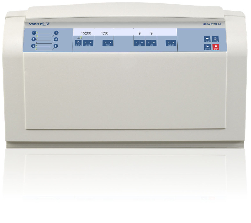 Optimize projects with the Mega Star 4.0 general purpose centrifuge series. These versatile, high capacity benchtop centrifuges provide maximum sample security and reproducibility in an intuitive, easy to use platform. Choose between a ventilated or refrigerated 4.0 L model, sold as an individual centrifuge or a package, to optimize bench space and productivity., Easy to use: Intuitive controls simplify operation and provide detailed information on a wide range of operating parameters for optimal performance., 04_BodyText: Auto-Lock™ III Rotor System: Secure locking system allows easy push-button installation and exchange of rotors. System saves time when switching between applications. Easy access to rotor chamber offers quick cleaning, a healthier working environment and longer unit life., 05_BodyText: ClickSeal™ Bucket Sealing System: The ClickSeal Biocontainment solution - seals with a snap; eliminates screw caps and complicated clips. System has glove-friendly, one-handed open/close capability. System is certified by CAMR™ in Porton Down, UK., 06_BodyText: Space-Saving Design: Compact dimensions optimize work area and ergonomic height and curved design ensure easy sample loading and unloading and easy cleaning., 07_BodyText: Energy Efficient: System offers up to 40% energy consumption savings on industry standard protocols, such as standard blood separation or conical tubes processing. | Centrifuges have a 2 year warranty. Rotors have a different warranty period., 02_BulletPoint: High capacity general purpose Mega Star 4.0 and 4.0 R centrifuges | Equipped with a simple, intuitive keypad control interface in a space saving footprint | Can run up to 40×50 ml conical tubes, 96×15 ml conicals tubes or 24× standard microplates | Compatible with the Auto-Lock III Rotor system and ClickSeal™ biocontainment lids | Available as a tissue culture package that includes the TX-1000 swinging bucket rotor, set of 4×1000 ml buckets, set of 4×ClickSeal™ biocontainment lids, set of 4×50 ml conical and 15 ml conical tube adapters, 10_Ordering: Centrifuge only option is supplied without accessories. Tissue Culture Packages includes TX1000 rotor, set of 4×1000 ml buckets, set of four ClickSeal™ biocontainment lids, set of four 10×50 ml conical tube adapters and set of four 24×15 ml conical tube adapters., Final SAP Desc Link: 4633299, SAP Description Status: Ready, Temperature range: −10... 40 °C, Max. Speed: 15200 rpm (depending on rotor), Voltage: 120 V, Optimize projects with the Mega Star 4.0 general purpose centrifuge series. These versatile, high capacity benchtop centrifuges provide maximum sample security and reproducibility in an intuitive, easy to use platform. Choose between a ventilated or refrigerated 4.0 L model, sold as an individual centrifuge or a package, to optimize bench space and productivity., Easy to use: Intuitive controls simplify operation and provide detailed information on a wide range of operating parameters for optimal performance., 04_BodyText: Auto-Lock™ III Rotor System: Secure locking system allows easy push-button installation and exchange of rotors. System saves time when switching between applications. Easy access to rotor chamber offers quick cleaning, a healthier working environment and longer unit life., 05_BodyText: ClickSeal™ Bucket Sealing System: The ClickSeal Biocontainment solution - seals with a snap; eliminates screw caps and complicated clips. System has glove-friendly, one-handed open/close capability. System is certified by CAMR™ in Porton Down, UK., 06_BodyText: Space-Saving Design: Compact dimensions optimize work area and ergonomic height and curved design ensure easy sample loading and unloading and easy cleaning., 07_BodyText: Energy Efficient: System offers up to 40% energy consumption savings on industry standard protocols, such as standard blood separation or conical tubes processing. | Centrifuges have a 2 year warranty. Rotors have a different warranty period., 02_BulletPoint: High capacity general purpose Mega Star 4.0 and 4.0 R centrifuges | Equipped with a simple, intuitive keypad control interface in a space saving footprint | Can run up to 40×50 ml conical tubes, 96×15 ml conicals tubes or 24× standard microplates | Compatible with the Auto-Lock III Rotor system and ClickSeal™ biocontainment lids | Available as a tissue culture package that includes the TX-1000 swinging bucket rotor, set of 4×1000 ml buckets, set of 4×ClickSeal™ biocontainment lids, set of 4×50 ml conical and 15 ml conical tube adapters, 10_Ordering: Centrifuge only option is supplied without accessories. Tissue Culture Packages includes TX1000 rotor, set of 4×1000 ml buckets, set of four ClickSeal™ biocontainment lids, set of four 10×50 ml conical tube adapters and set of four 24×15 ml conical tube adapters., Capacity: 4.0 L, VWR® Mega Star 4.0 R general purpose 4 L benchtop centrifuge, refrigerated, 120 V (centrifuge only), Width: 74.6 cm (29.4"), Max. RCF: 25830×g (depending on rotor), Depth: 66 cm (26"), Height: Lid open: 86.1 cm (33.9") | Lid closed: 36.1 cm (14.2"), Cat. No.: 76468-136, Weight: 117 kg (258 lbs.), Final SAP Desc Link: 4633299, SAP Description Status: Ready, Temperature range: —, Max. Speed: 15200 rpm (depending on rotor), Voltage: 120 V, Optimize projects with the Mega Star 4.0 general purpose centrifuge series. These versatile, high capacity benchtop centrifuges provide maximum sample security and reproducibility in an intuitive, easy to use platform. Choose between a ventilated or refrigerated 4.0 L model, sold as an individual centrifuge or a package, to optimize bench space and productivity., Easy to use: Intuitive controls simplify operation and provide detailed information on a wide range of operating parameters for optimal performance., 04_BodyText: Auto-Lock™ III Rotor System: Secure locking system allows easy push-button installation and exchange of rotors. System saves time when switching b
