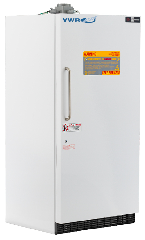 Temperature range: 1...10 °C Refrigerator / ‒15...‒25 °C Freezer, They utilize non-sparking and/or ATEX rated components and are engineered for use in environments where volatile/explosive conditions could potentially exist. For storage of flammable or volatile materials within typical laboratory or non-volatile environments, see flammable material storage units., These units are equipped with interior shelving, and microprocessor temperature controllers. The standard line provides multi-functional features in a cost-effective design., 04_BodyText: Material: White powder coat, 02_BulletPoint: Mechanical thermostat sealed in explosion proof box | Keyed door lock | High density foam insulation | Must be hardwired for safety, 13_Caution: Units are not equipped with a line cord and plug. They must be hardwired in conduit to 120 VAC power source for safety., 08_Certifications: These units meet NFPA and OSHA guidelines for hazardous location, Class 1, Division II, Groups C and D guidelines., 10_Ordering: Units come with a two year parts and labor warranty., Capacity: 850 L (30 cu.ft.), Standard series laboratory refrigerator/freezer combo hazardous location (explosion proof), 30 CF, Cat. No.: 76580-130, Electrical: 115 V, 60 Hz, 6 A, ⅓ HP, Defrost: Cycle (Refrigerator) / Manual (Freezer), Door Type: 1 solid door, right hinged, Shelves/drawers: 3 adjustable shelves (refrigerator), Weight: 185 kg (408 lbs.), Exterior W×D×H: 908×921×1969 mm (35¾×36¼×77½"), Interior W×D×H: 737×565×305 mm (29×22¼×12") Freezer / 813×572×1283 mm (32×22½×50½") Refrigerator, Cat. No.: 76580-130, Final SAP Desc Link: 6058295, SAP Description Status: Ready, They utilize non-sparking and/or ATEX rated components and are engineered for use in environments where volatile/explosive conditions could potentially exist. For storage of flammable or volatile materials within typical laboratory or non-volatile environments, see flammable material storage units., These units are equipped with interior shelving, and microprocessor temperature controllers. The standard line provides multi-functional features in a cost-effective design., 04_BodyText: Material: White powder coat, 02_BulletPoint: Mechanical thermostat sealed in explosion proof box | Keyed door lock | High density foam insulation | Must be hardwired for safety, 13_Caution: Units are not equipped with a line cord and plug. They must be hardwired in conduit to 120 VAC power source for safety., 08_Certifications: These units meet NFPA and OSHA guidelines for hazardous location, Class 1, Division II, Groups C and D guidelines., 10_Ordering: Units come with a two year parts and labor warranty., Final SAP Desc Link: 6058295, SAP Description Status: Ready