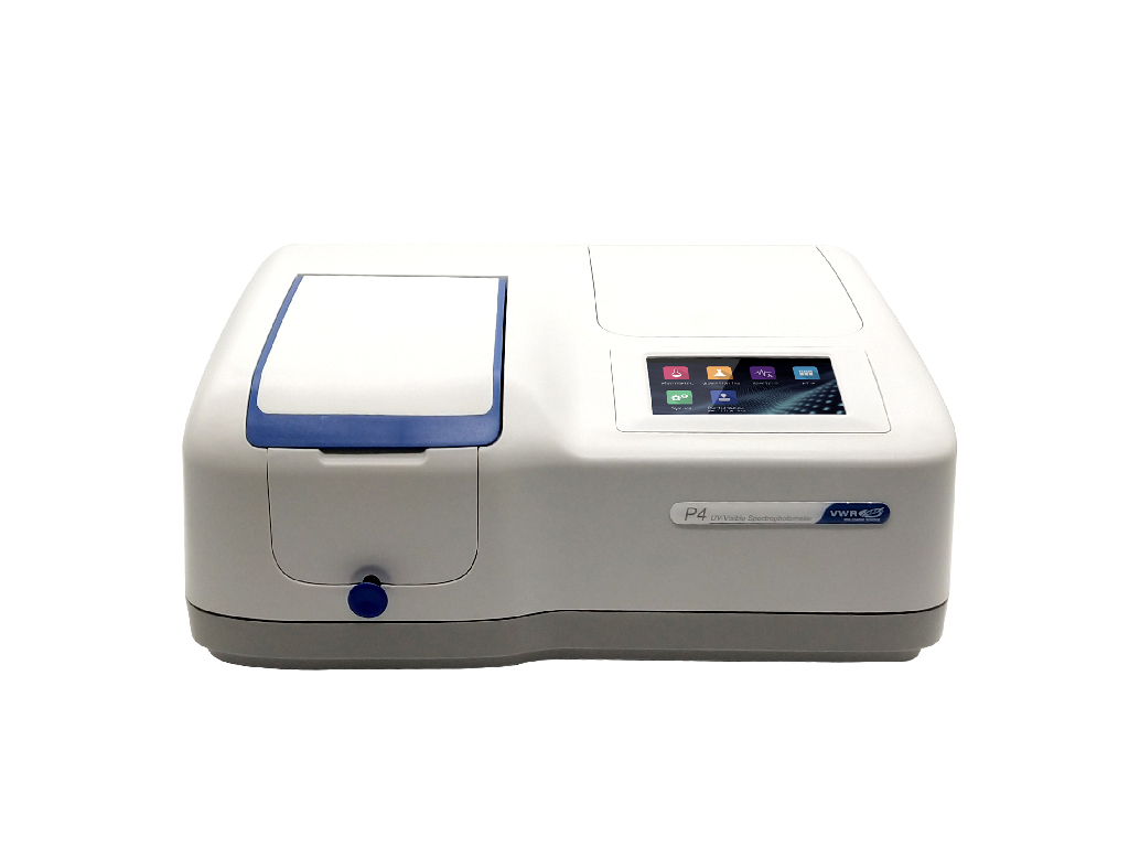 Here is the corrected text: Model: P4 Absorbance Range: -0.3...+3.0 A Light Source: Tungsten/deuterium Memory: 236 Kb Power: 100-240 V AC; 50/60 Hz; 120 W The P4 UV/Visible spectrophotometer is an easy-to-use instrument with advanced performance, providing several basic functions such as photometry tests, quantitation tests, and spectrum scanning. • Highly accurate and reliable • Simple, elegant design with aluminum base • Easy to change lamp, user-friendly interface Dimensions: 456×360×185 mm Wavelength accuracy: ±0.5 nm Photometric Range: 0-200% T Scan speed: 4200 nm/min Wavelength Repeatability: <0.2 nm Weight: 10.7 kg Spectral range: 190-1100 nm Cat. No.: 76520-712